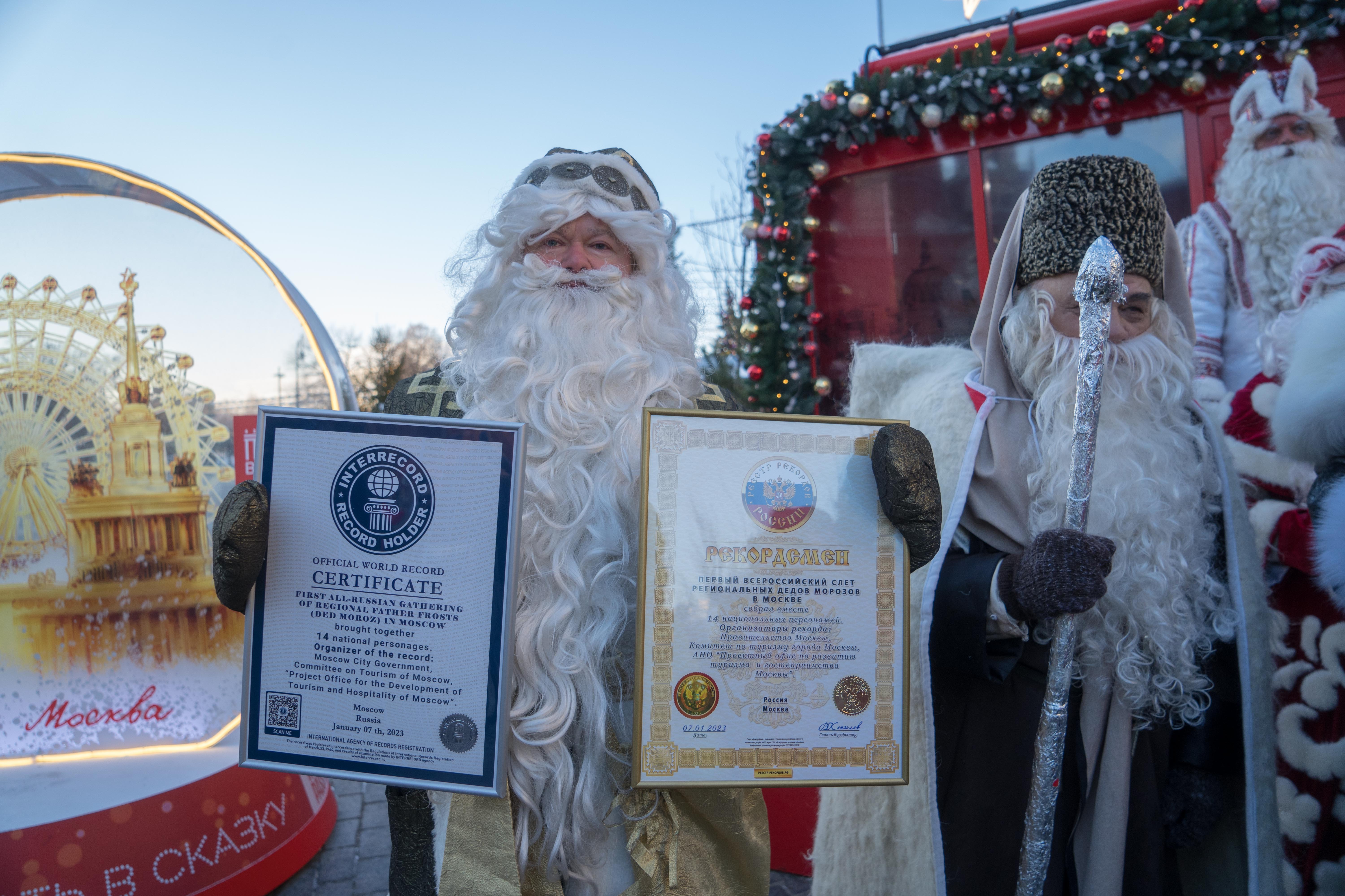 Достижение под названием «Первый всероссийский слет региональных Дедов Морозов в Москве» зафиксировало международное агентство регистрации рекордов «Интеррекорд». Оно считается крупнейшей в Евразии альтернативой Guinness World Records (Книги рекордов Гиннесса).
