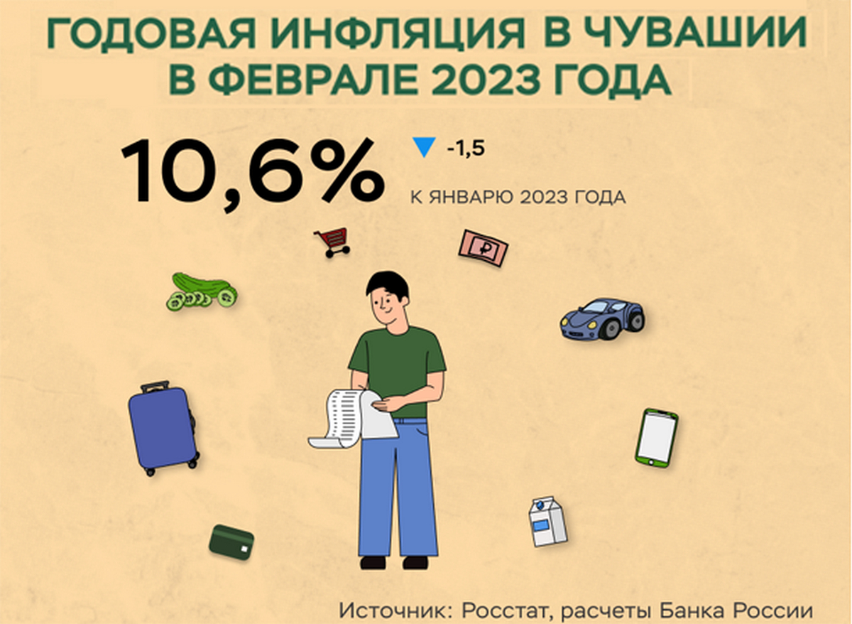 В целом в Чувашии годовая инфляция продолжила снижаться. В феврале она составила 10,6% после 12,1% в январе. При этом впервые за несколько месяцев ее уровень оказался ниже значения по Приволжскому федеральному округу и в целом по России.