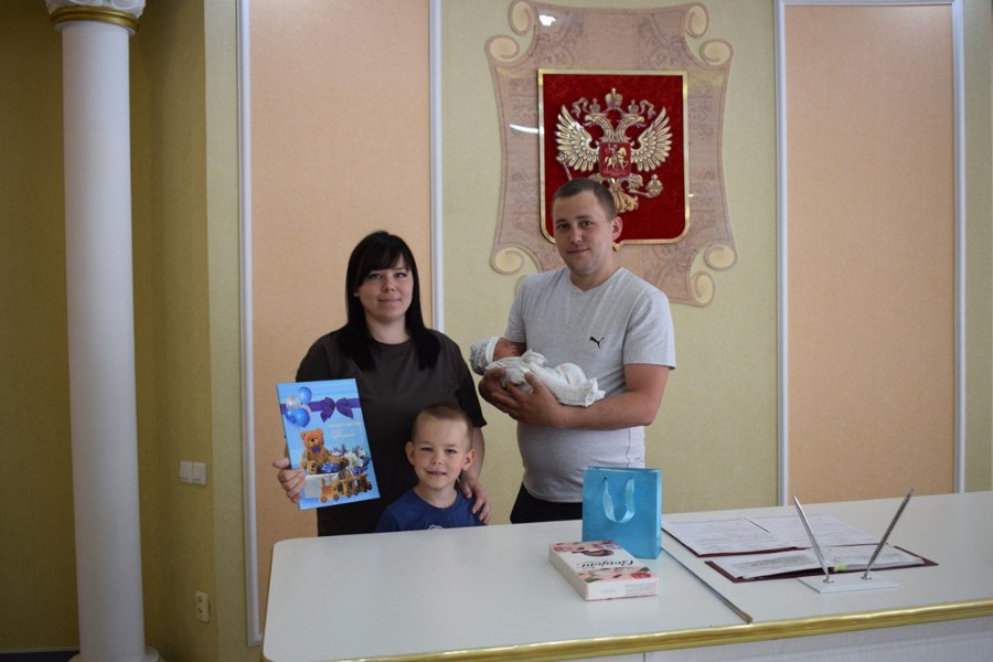 Начальник отдела ЗАГС Юлия Владимировна Каюкова поздравила счастливое семейство с радостным событием и вручила первый официальный документ ребенка – свидетельство о рождении, с этого момента Максим стал полноправным гражданином своей страны!