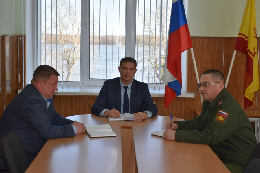 6 апреля в администрации Козловского муниципального округа прошла рабочая встреча главы муниципалитета Алексея Людкова с представителем 12-го Главного Управления Министерства обороны Российской Федерации Виталием Неменковым.