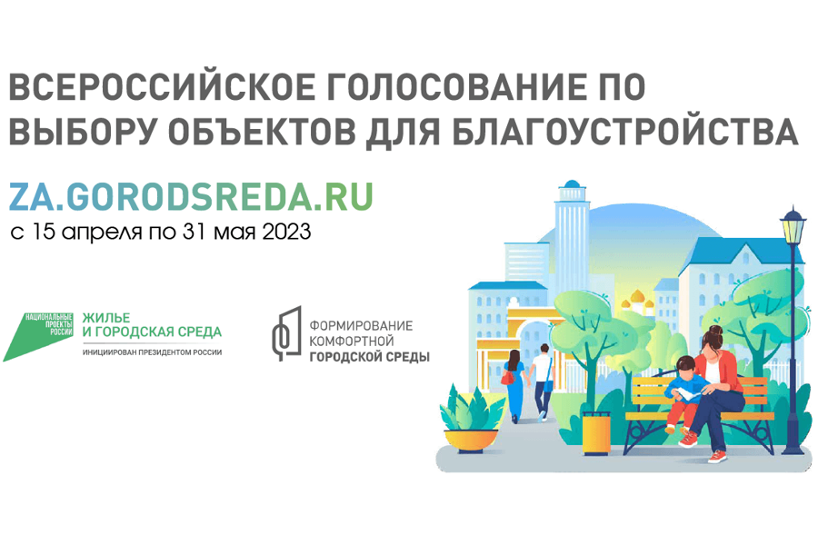 Всероссийское онлайн-голосование за новые объекты благоустройства состоится с 15 апреля по 31 мая 2023 года .