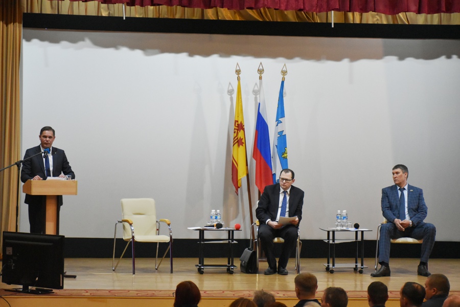С жителями округа встретились глава муниципалитета Алексей Людков, руководитель Госжилинспекции Чувашии - главный государственный жилищный инспектор республики Виктор Кочетков, председатель Собрания депутатов Козловского муниципального округа Фирдавиль Искандаров, В начале мероприятия они ознакомились с выставкой продукции, выпускаемой на территории Козловского муниципального округа.