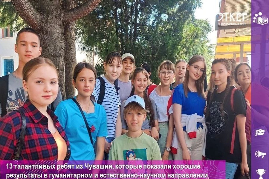 В Международном детском центре «Артек» с 21по 12 июля проходит смена «ВРЕМЯ ПЕРВЫХ. Конкурсный отбор прошли 13 самых талантливых ребят из Чувашии, которые показали хорошие результаты в гуманитарном и естественно-научном направлении.