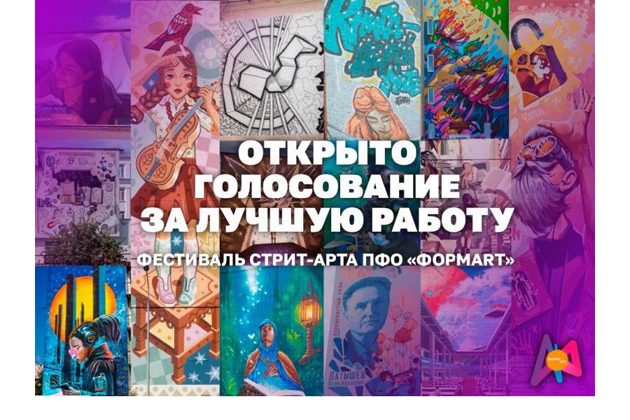 В ПФО стартовало голосование за лучшее граффити в рамках фестиваля стрит-арта «ФормART», о рганизаторами которого являются аппарат полномочного представителя Президента России в ПФО, НКО «Фонд содействия развитию институтов гражданского общества в Приволжском федеральном округе».
