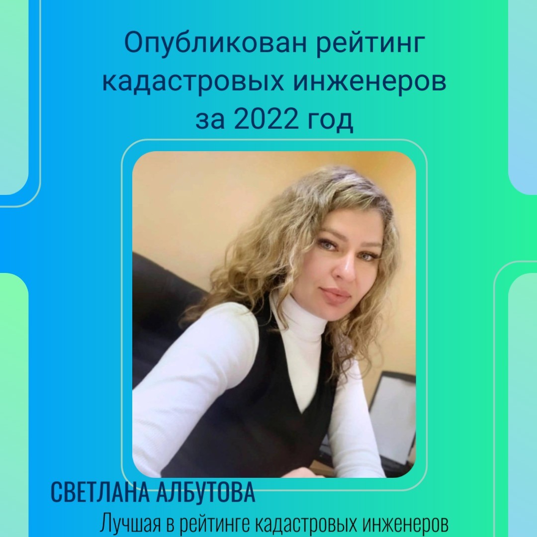 Лидером рейтинга кадастровых инженеров в Чувашии стала Светлана Албутова. За 2022 год она подготовила 907 документов о постановке на кадастровый учет объектов недвижимости. Светлана Геннадьевна работает в Батыревском округе, который в нашей республике числится среди лучших округов по оформленным правам на недвижимость.