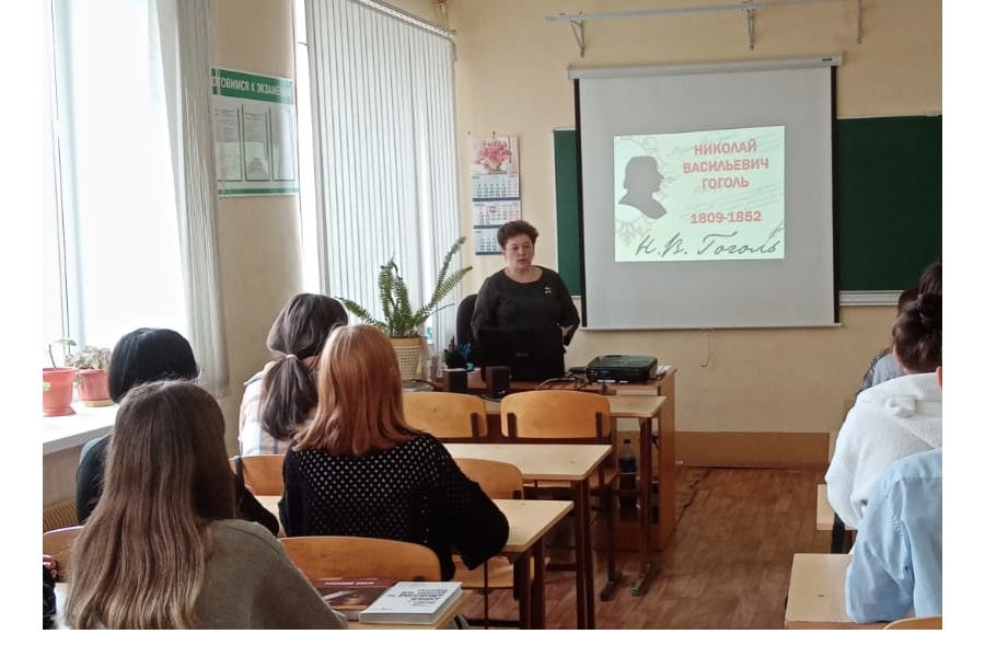 3 апреля для студентов Ядринского агротехникума сотрудник Ядринской центральной библиотеки Ожигина И.В.провела литературный час «Вечный странник», приурочив его к 215-летию со дня рождения Н.В. Гоголя.