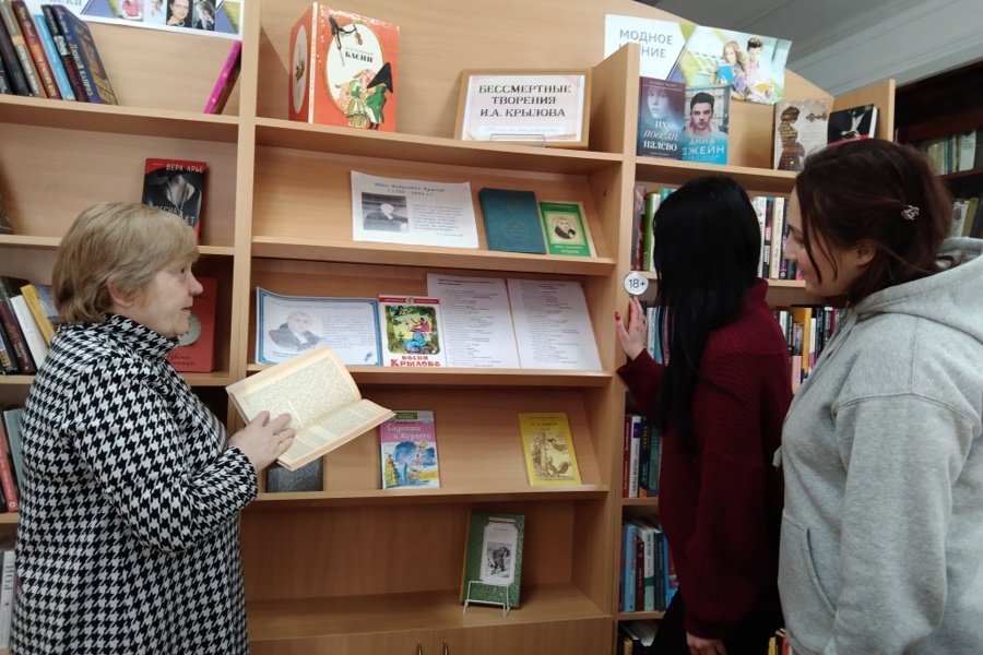 На абонементе Ядринской центральной библиотеки оформлена книжная выставка «Бессмертные творения И.А. Крылова». Сотрудники библиотеки рассказали о том, в какой атмосфере любви к книгам, литературе воспитывался будущий баснописец, как долго он искал свое призвание, откуда черпал многообразные сюжеты для своих басен, наконец, каким человеком он был, что волновало его в жизни. На выставке также представлены басни Крылова, изданные в разные годы, литературоведческие публикации.