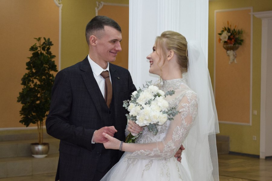 Праздничная церемония началась традиционным ритуалом бракосочетания, на котором будущие супруги дали обет любви и верности друг другу, обменявшись обручальными кольцами. Вадим и Мария скрепили подписями свой союз, и в подтверждении столь торжественного факта новобрачным было вручено свидетельство о заключении брака.