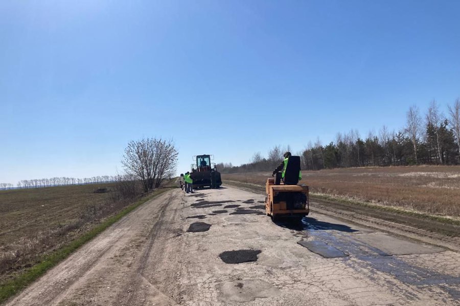 На автодороге Шизазаны-Калинино-Оженары-М. Тугаево приступили к ямочному ремонту