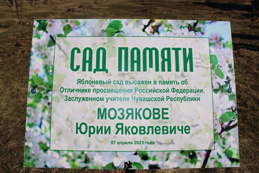 18 апреля исполняется год, как нет с нами Заслуженного учителя Чувашской Республики, Отличника народного просвещения РФ Мозякова Юрия Яковлевича. Юрий Яковлевич Мозяков много лет проработал в школе учителем иностранного языка, был директором школы в 1992-2005 и 2010-2019 годах, с 2005 по 2010 годы возглавлял отдел образования, спорта и молодёжной политики администрации Шумерлинского района. Он пользовался заслуженным авторитетом в родном селе, районе и республике. Уникальный человек, обладающий редким умом, недюжинной работоспособностью, стойким характером. Сегодня, в Год педагога и наставника, в Ходарской школе имени И.Н. Ульянова, которую он окончил и много лет возглавлял, состоялась закладка сада памяти. Перед собравшимися выступили заместитель главы администрации – начальник отдела образования, спорта и молодёжной политики администрации Шумерлинского муниципального округа Ренат Алексеевич Чебутаев, директор школы Зинаида Васильевна Макарова, ветеран педагогического труда Зоя Фёдоровна Рафинова, директора Егоркинской и Юманайской школ – Е.В. Пакулаева и Г.А. Фёдорова. Они сказали немало добрых слов о Юрии Яковлевиче, отметили, что жизнь, прожитая Юрием Яковлевичем, вдохновляющий пример для нас всех, образец творческого горения, интеллигентности, мудрости, человеческого благородства, преданности делу, служения людям на поприще образования. После выступлений гостей все собравшиеся направились к месту закладки сада памяти. В память о Юрие Яковлевиче Мозякове на территории школы были посажены саженцы яблони. Так же все собравшиеся почтили память Ю.Я. Мозякова минутой молчания. На месте закладки сада была установлена памятная табличка.