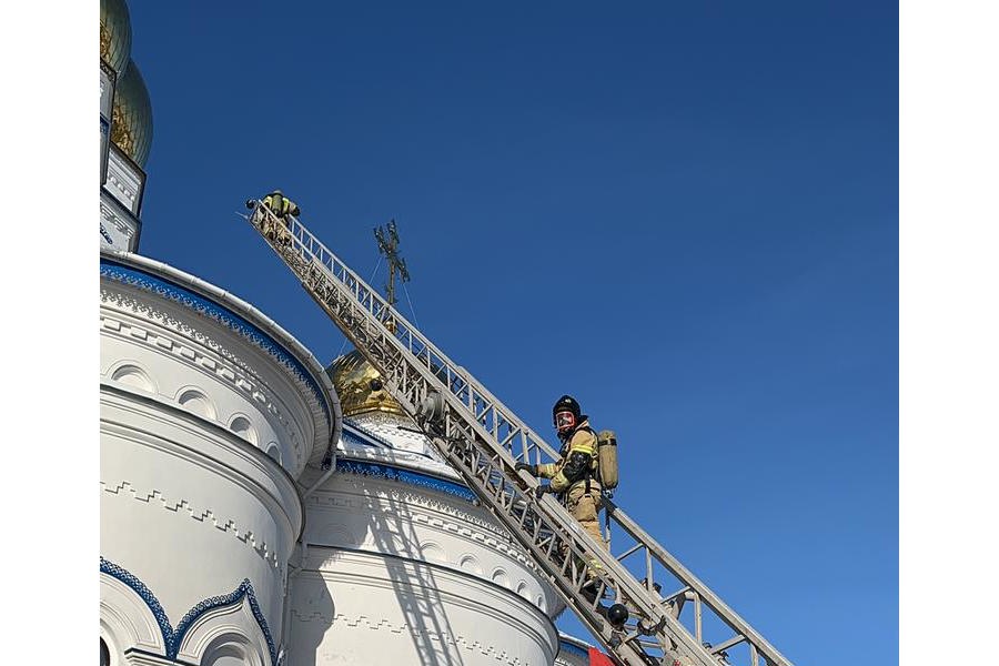 На территории Тихвинского Богородского женского монастыря проведено тренировочное ПТУ по тушению условного пожара