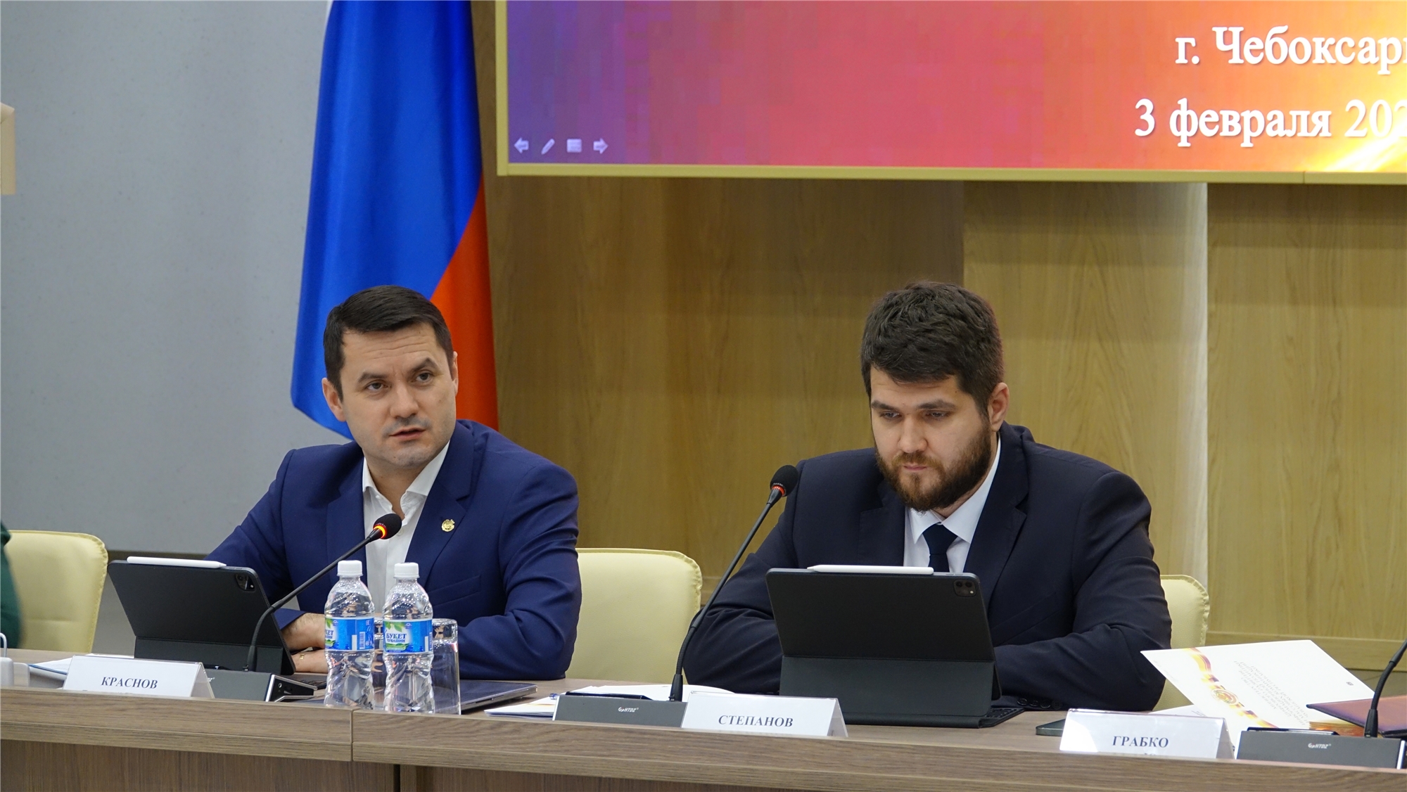 Официальную часть заседания открыли вице-премьер – министр экономического развития и имущественных отношений Чувашской Республики Дмитрий Краснов и руководитель регионального Минцифры Михаил Степанов . «Хотел бы поблагодарить команду Минцифры Чувашии за работу в 2022 году. Мы видим, что запущен ряд уникальных проектов, наблюдаются конкретные результаты, отмечаются достижения на уровне Российской Федерации. Уверен, что в 2023 году республика не только укрепит свои позиции, но и усилит, как в части цифровой трансформации, так и в части развития медиа», - обозначил Дмитрий Краснов.
