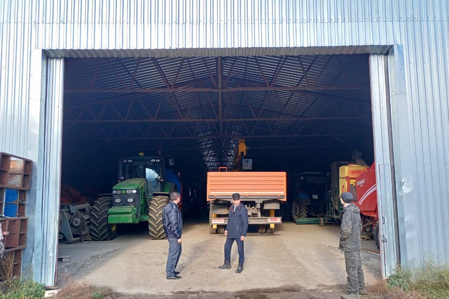 Вкрестьянско-фермерском хозяйстве Валентина Павлова также вся сельскохозяйственная техника поставлена в ангары на зимнее хранение.В