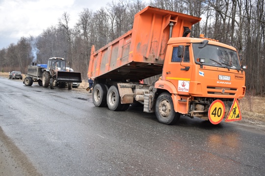 Сегодня, несмотря на погодные условия, подрядная организация ООО «ДорТех» занимается дорожными работами по ямочному ремонту на автодроге «Сура», а именно «Сундырский поворот».