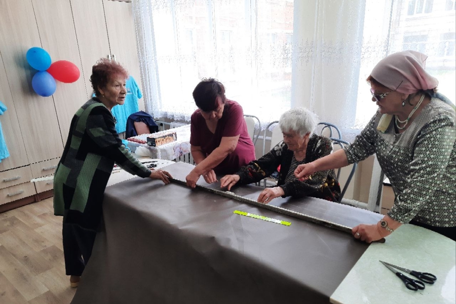 Сотрудники Янтиковского центра соцобслуживания совместно с «серебряными» волонтерами плетут маскировочные сети для участников СВО
