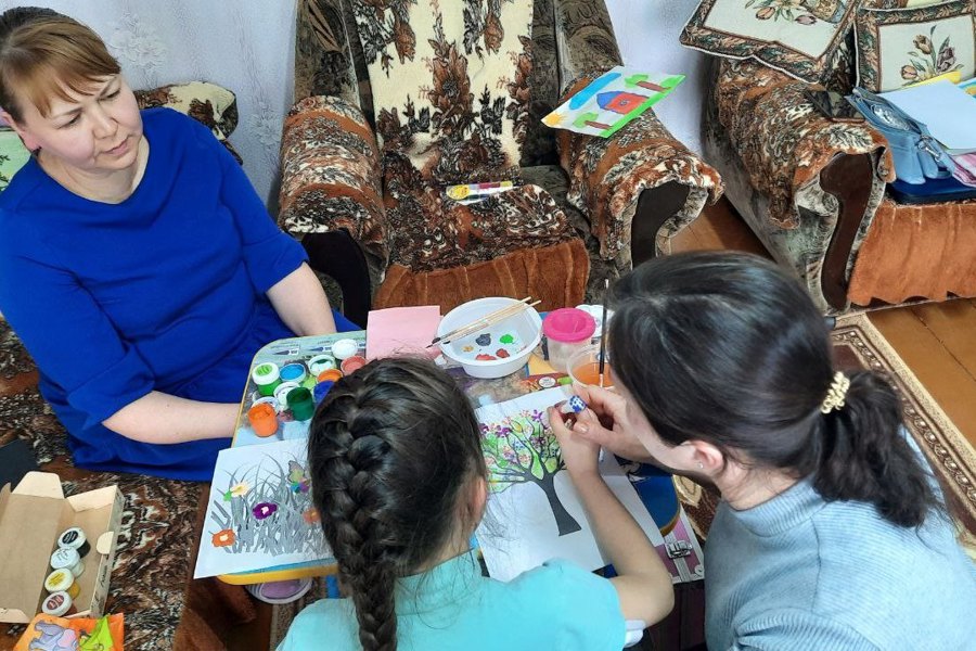 Специалисты Моргаушского центра социального обслуживания провели занятие на дому «Волшебные краски»