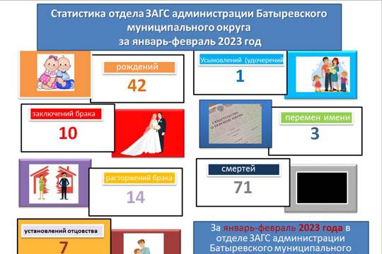 Статистика отдела ЗАГС администрации Батыревского муниципального округа за январь-февраль 2023 года