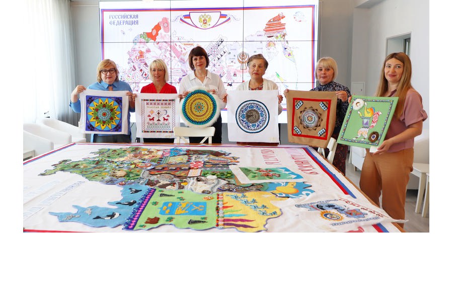 61 мастер народных художественных промыслов и ремесел, декоративно-прикладного творчества из девяти муниципальных округов Магаданской области создали фрагмент своего округа, а затем соединили в единое полотно.