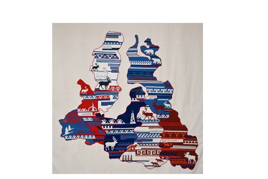 Вышитая карта Ямало-Ненецкого автономного округа.