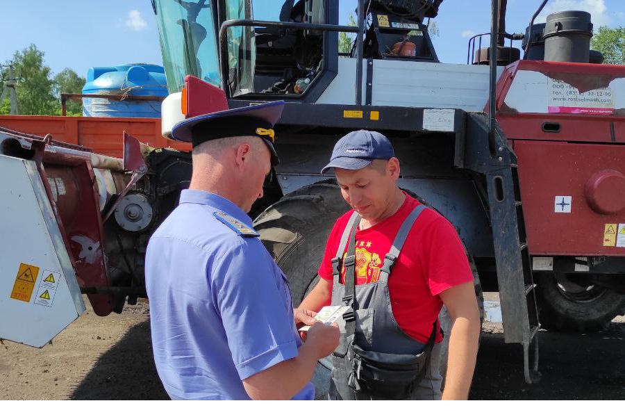 Сегодня, 18 июня 2024 г., прошел технический осмотр кормоуборочных комбайнов в СХПК им. Кирова. Старший государственный инспектор – начальник Государственной инспекции по надзору за техническим состоянием самоходных машин и других видов техники Канашского муниципального округа Денис Егоров совместно с начальником отдела сельского хозяйства, экономики и инвестиционной деятельности управления сельского хозяйства Канашского муниципального округа Виктором Васильевым осмотрели исправность кормоуборочной техники.