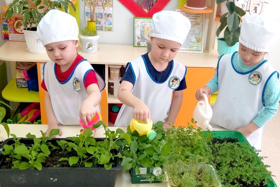 В начале весны, каждая группа создает «Огородик на окне». Педагоги способствуют развитию интереса к выращиванию растений и обучают навыкам их ухода.