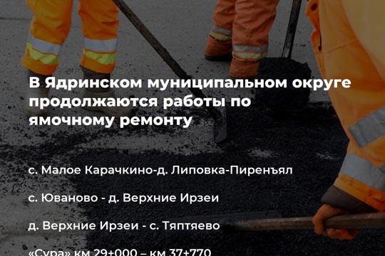 Узнать о сроках проведения работ в Вашем населенном пункте можно на сайте администрации Ядринского муниципального округа по ссылке: https://yadrin.cap.ru/press-centr/2023/03/30/predvariteljnij-plan-po-vipolneniyu-yamochnogo-rem