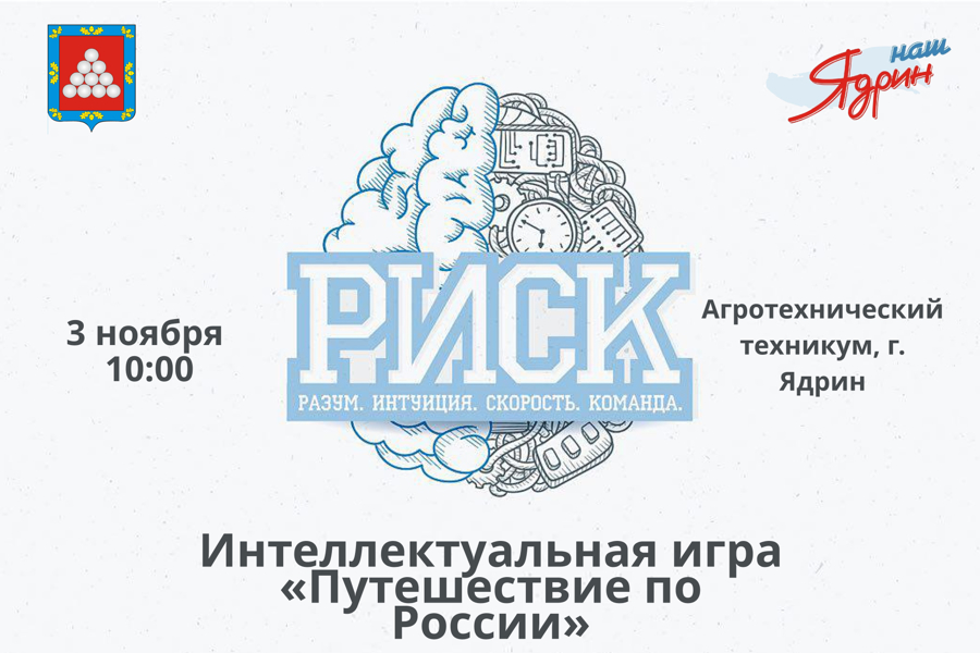 Завтра, 3 ноября в 10:00, в Ядринском агротехническом техникуме пройдет интеллектуальная игра «РИСК» - «Путешествие по России», в рамках празднования Дня народного единства