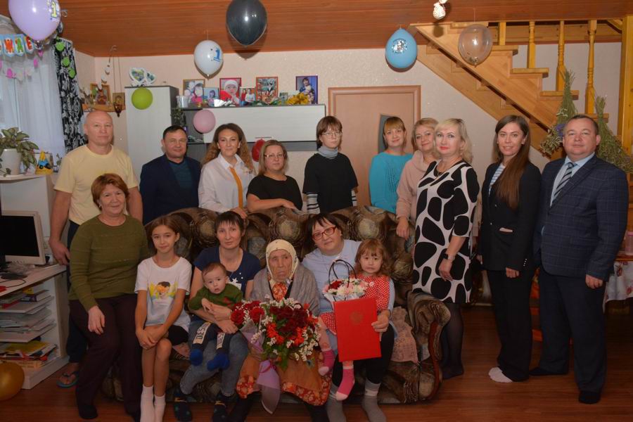 С вековым юбилеем Евлампию Филпповну сегодня поздравили замглавы округа Алексей Фирсов, заместитель директора ФГБУ «Росдетцентр» Дарья Волкова, а также представители социальных служб округа, начальник Малояушского территориального отдела.