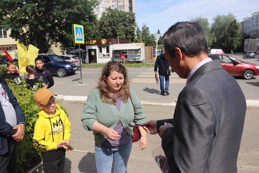 В день основных праздничных торжеств горожанам вручались ленты триколор. Волонтеры крепили их на одежду алатырцам и поздравляли с праздником.
