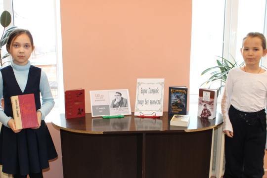 К этой дате в Ядринской детской библиотеке оформлена выставка-портрет «Борис Полевой: пишу без вымысла!», посвященная жизни и творчеству советского писателя. Постоянные пользователи детской библиотеки в этот день познакомились с разными произведениями Б. Полевого, а также с книгой «Повесть о настоящем человеке», которая принесла писателю наибольшую писательскую известность.