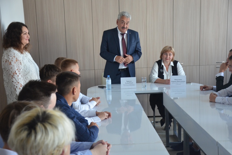 4 сентября Председатель Госсовета Чувашии Леонид Черкесов встретился с учениками чебоксарской школы № 28 на уроке «Разговоры о важном» и обсудил с ними тему выбора жизненного пути и профессии.