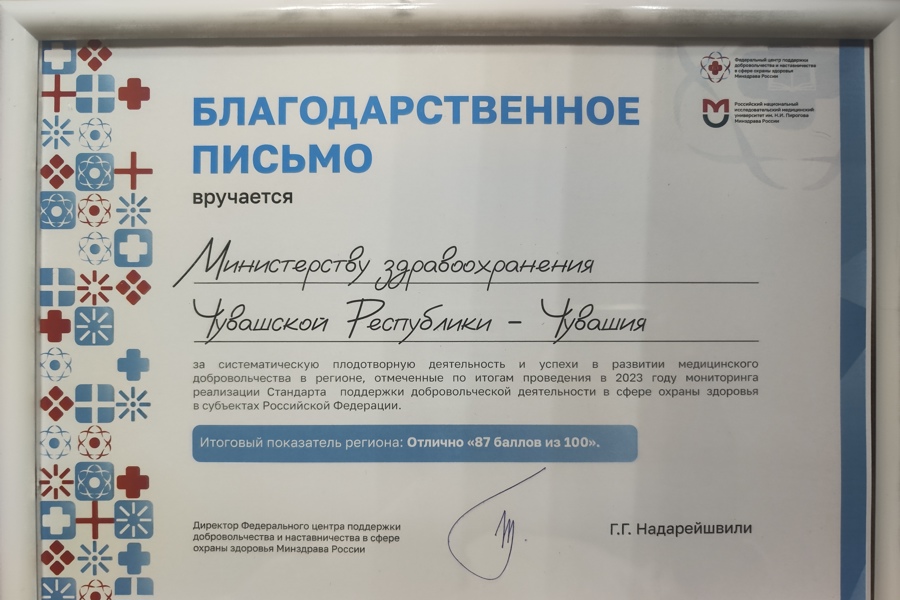 Минздрав Чувашии наградили за поддержку медицинского добровольчества