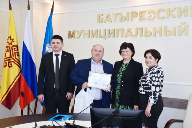 Сертификат победителю конкурса в зале совещаний администрации Батыревского муниципального округа вручила Ирина Письменская, директор Чувашского РФ АО «Россельхозбанк», которая поздравила победителя.