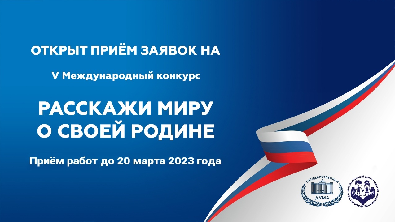 Прием заявок на V Международный конкурс "Расскажи миру о своей Родине" продлён до 20 марта 2023 года