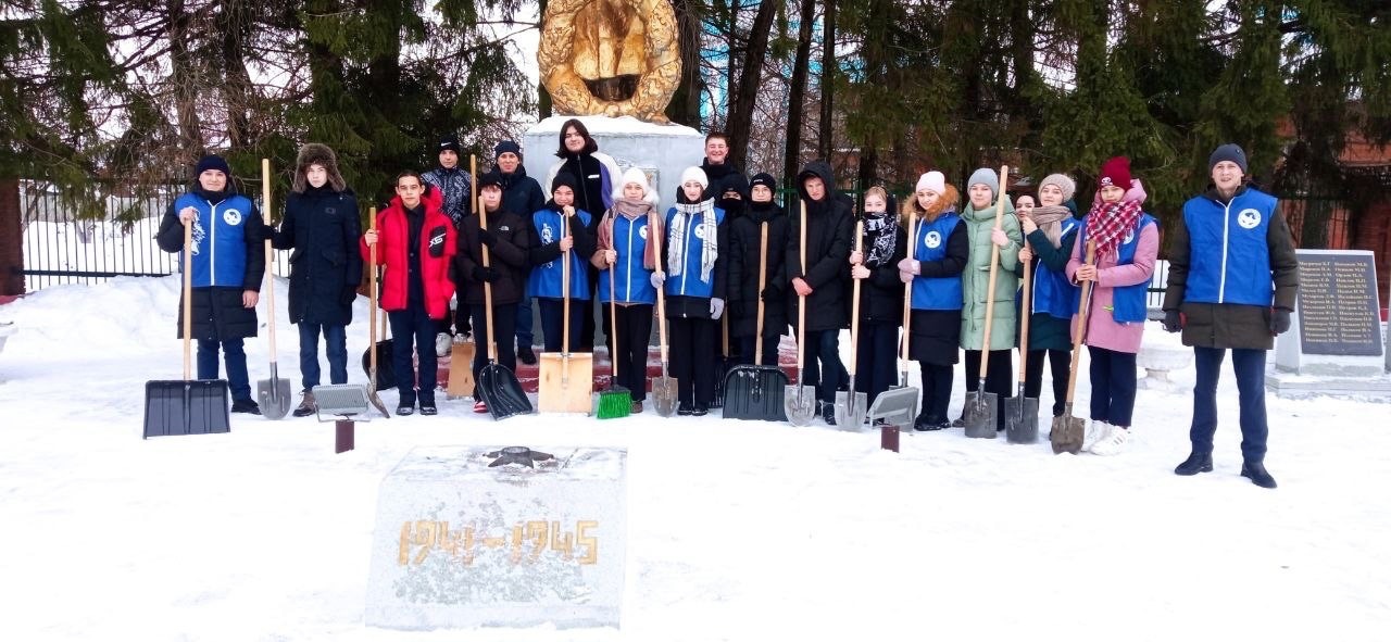 На днях "Волонтёры Победы", а также учащиеся 10А класса СОШ №3 города Ядрина вместе с преподавателем Николаем Сергеевым очистили от снега территории памятных мест - площадь Победы и Детский парк.