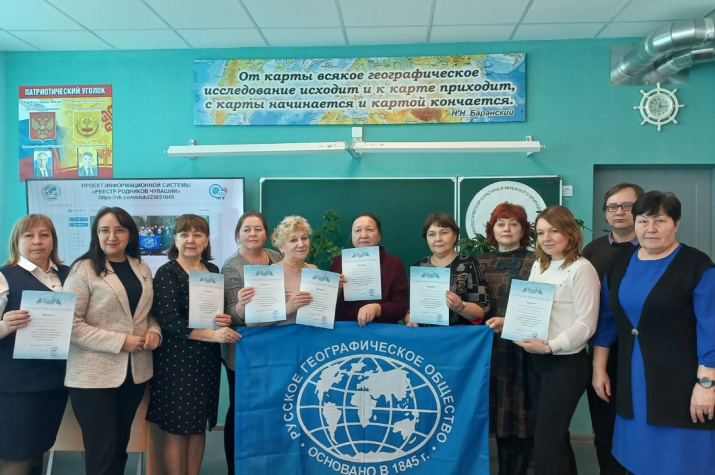 Учителя Ибресинского района - участники встречи. Фото ЧувРО РГО В канун школьных весенних каникул состоялся профориентационный десант активистов Чувашского республиканского отделения РГО, его Молодежного клуба «Маттур»,