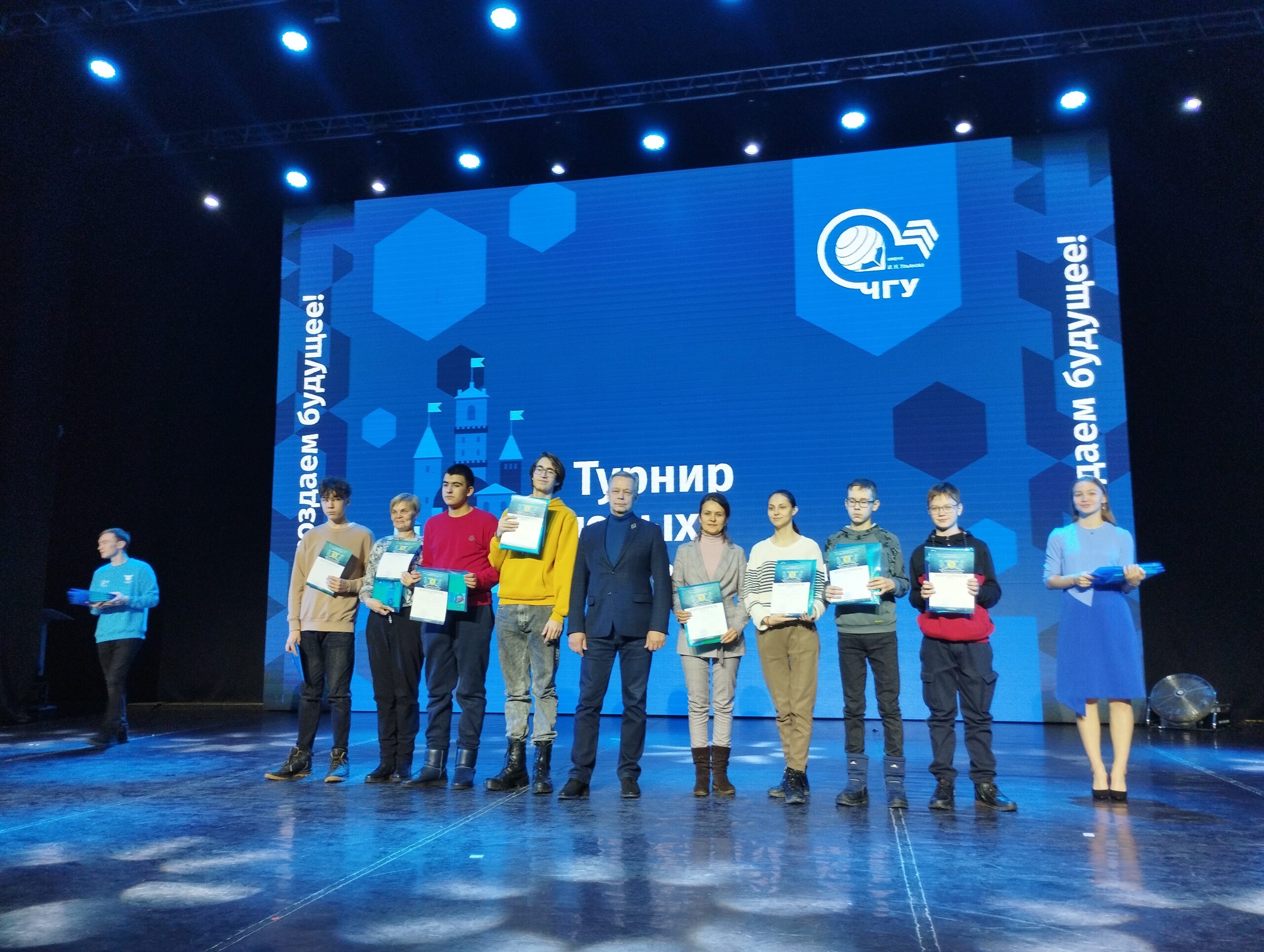 “Орлы – 44” (5 класс, лицей №44 г. Чебоксары), “Косинус” (6 класс, лицей №3 г. Чебоксары), “Старт” (6 класс, СОШ №61 г. Чебоксары), ” Гвозди ” (7 класс, лицей №3 г. Чебоксары), “Турбогранники” (8 класс, лицей №3 г. Чебоксары), “Гиперболоиды” (9 класс, лицей №3 г. Чебоксары).