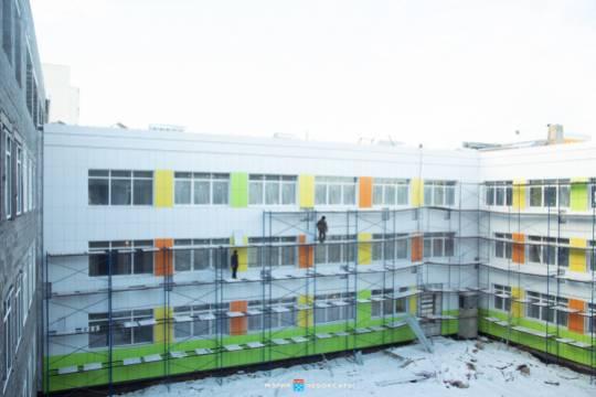 Сейчас подрядная организация ведет строительные работы на всех четырех блоках школы. Практически везде завершен монтаж железобетонных конструкций и установлены лифты. Одновременно с этим подрядчик начал подготовку проекта благоустройства прилегающей территории. Рабочие занимаются монтажом ограждения и обустраивают подъездные пути и пешеходные дорожки.