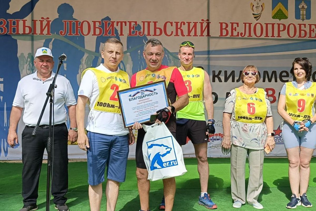 От имени секретаря регионального отделения Партии «Единая Россия» Леонида Черкесова врио руководителя регионального исполкома Партии Александр Осипов вручил благодарность организатору мероприятия Драндрову Сергею Герольдовичу за большой личный вклад в пропаганду физической культуры, спорта и здорового образа жизни, организацию и проведение любительского профсоюзного велопробега «100 километров – Потому чТо мы Вместе» на территории Чувашской Республики в рамках Всероссийского спортивного марафона сторонников «ЕДИНОЙ РОССИИ» «Сила России».