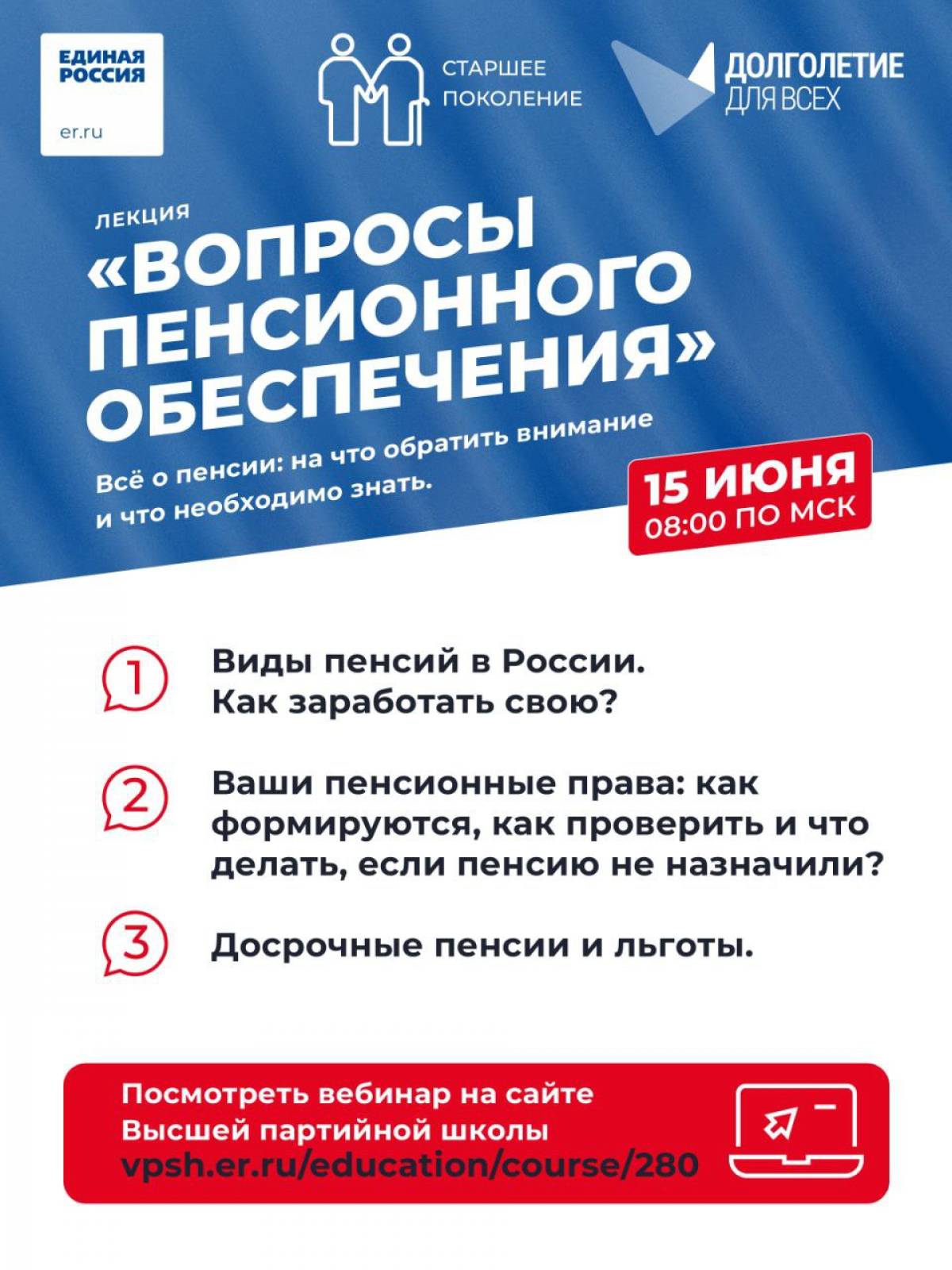 Кстати, 15 июня в 08.00 часов по мск на платформе стартует следующая просветительская лекция на тему: «Вопросы пенсионного обеспечения».