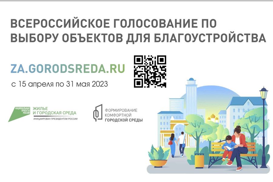В рамках реализации проекта «Формирование комфортной городской среды» с 15 апреля по 31 мая 2023 года объявлено Всероссийское голосование по выбору объектов для благоустройства.