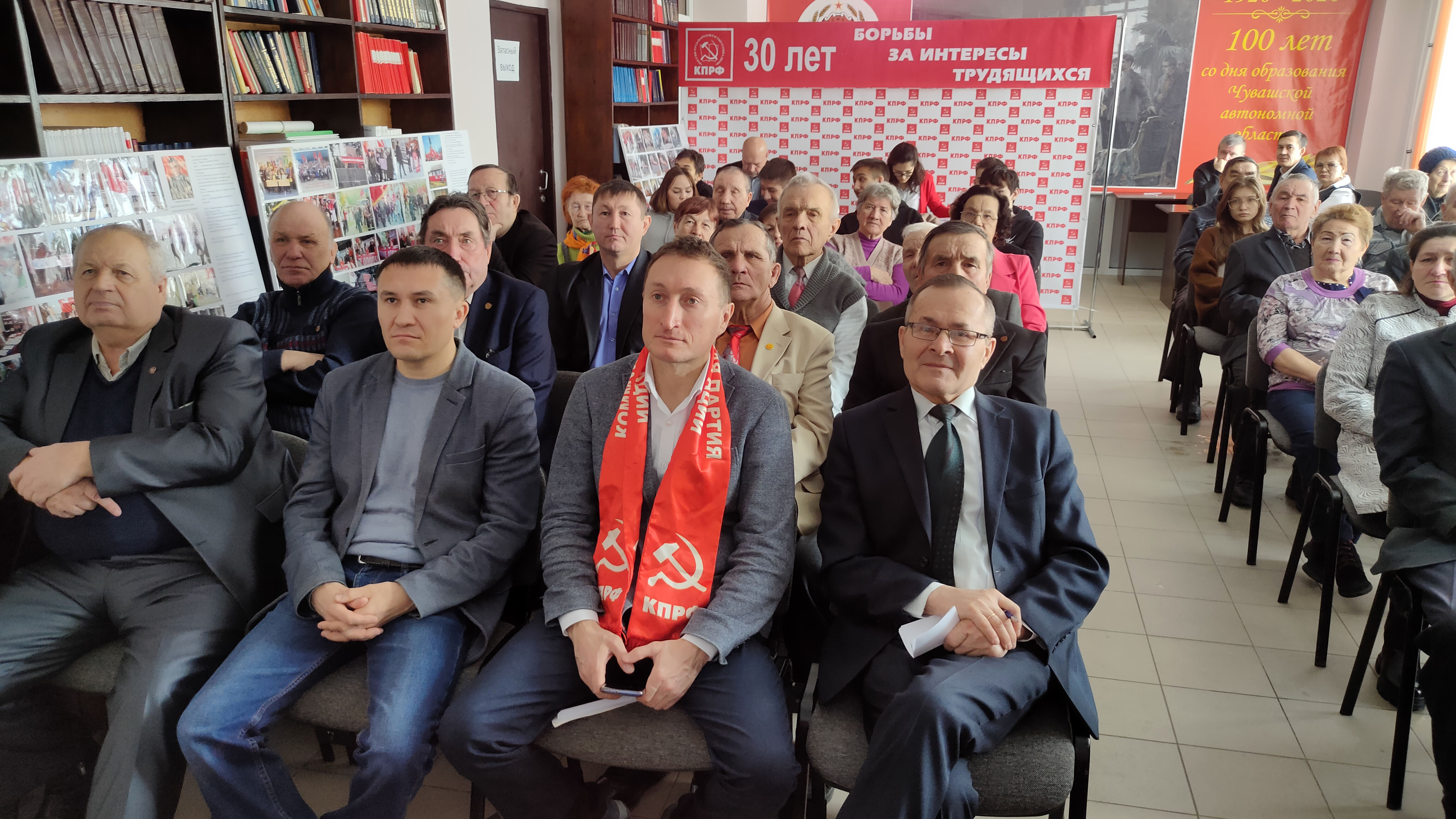 От Чувашского республиканского отделения КПРФ в работе собрания участвовала большая делегация. Конференц-зал Чувашского рескома КПРФ заполнили представители рескома, чебоксарских городского и районного отделений, ряда других местных отделений партии, общественных организаций «Дети войны», «Союз советских офицеров», женского союза «Надежда России», комсомольцы. По завершении мероприятия первый секретарь Чувашского рескома КПРФ А.М. Андреев поздравил всех с 30-летием партии и поблагодарил за участие в торжественном собрании.