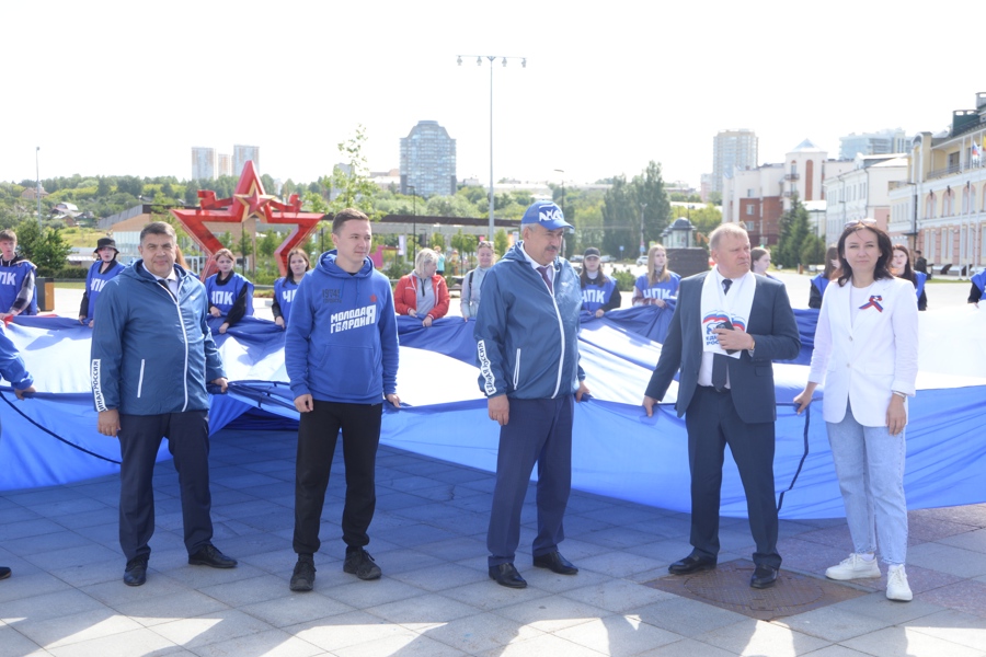 Российский флаг площадью полторы тысячи квадратных метров раскинулся сегодня в самом сердце Чувашии - на Красной площади в Чебоксарах.