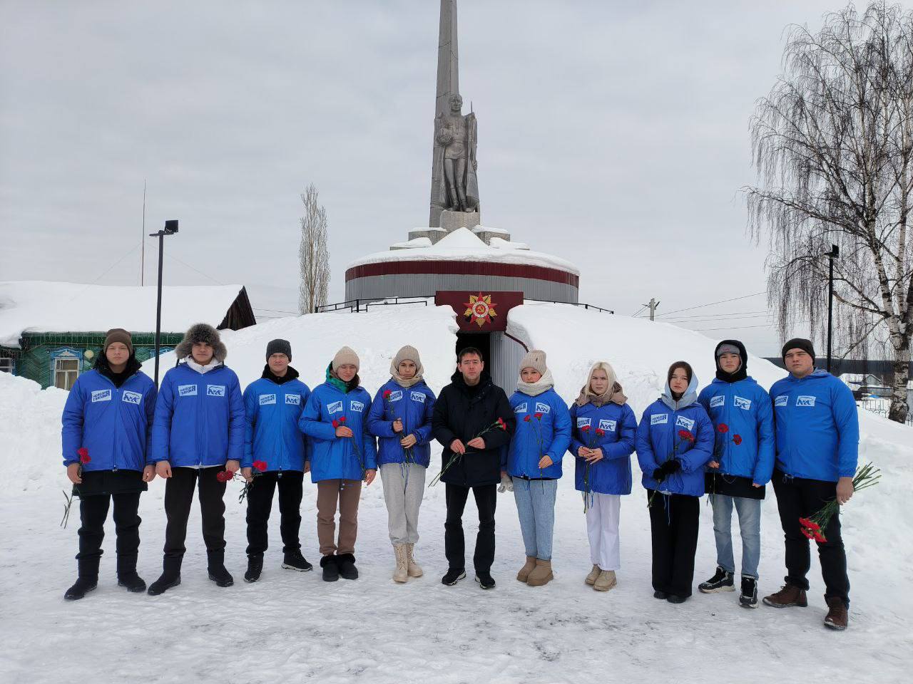 Молодогвардейцы Комсомольского местного отделения провели акцию по возложению цветов в рамках празднования Дня защитника Отечества
