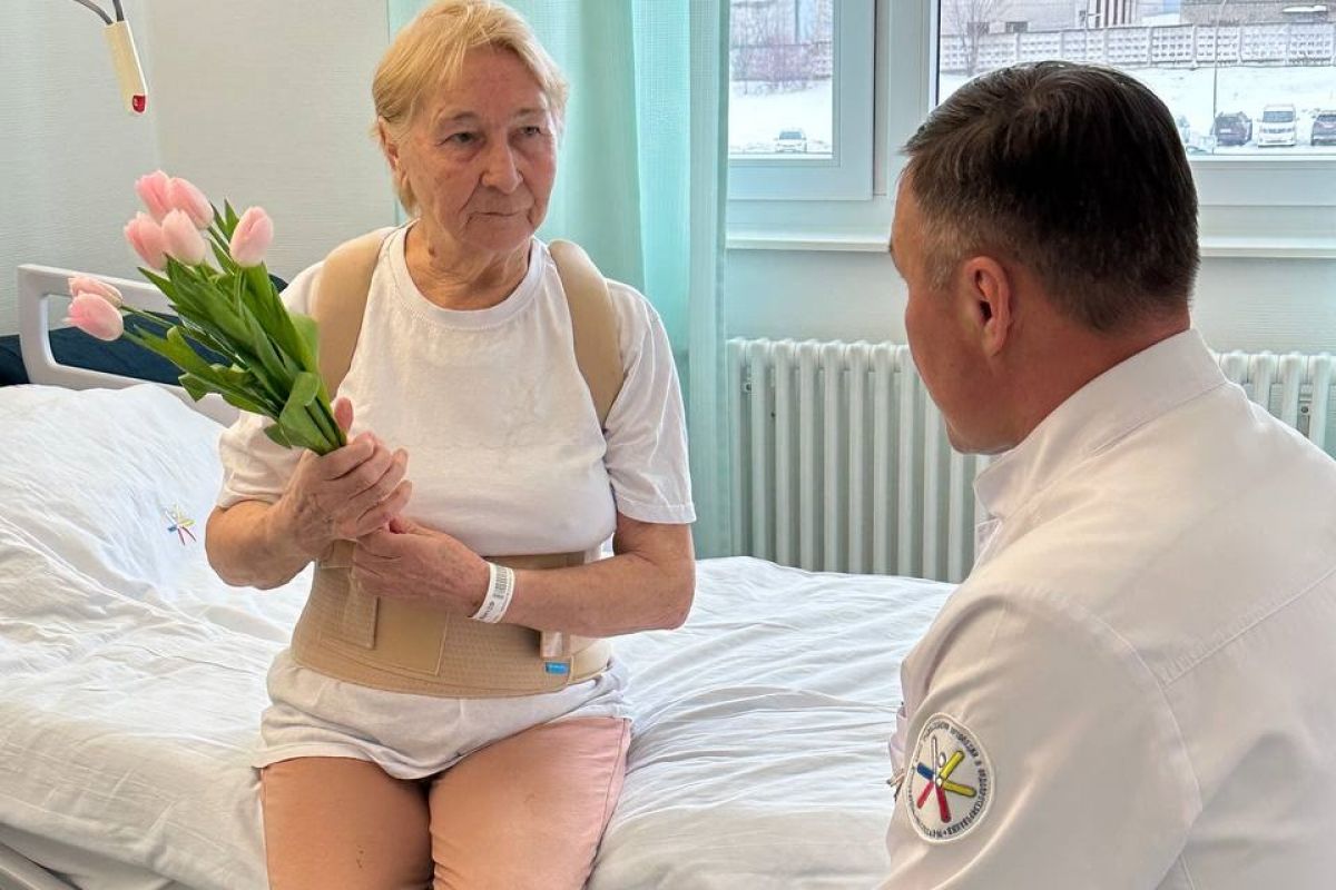 Пациентка находится на лечении в травматолого-ортопедическом отделении №4 (патологии позвоночника). Николай Станиславович пожелал ей скорейшего выздоровления и всего самого доброго.