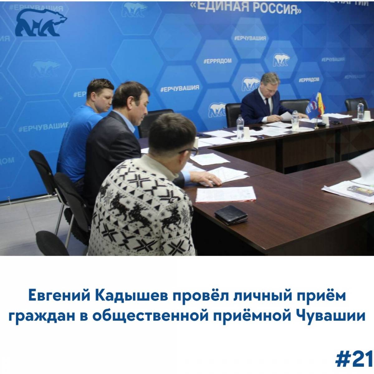 Глава г. Чебоксары, руководитель столичного отделения Партии Евгений Кадышев провел очередной прием граждан по личным вопросам в региональной общественной приёмной Председателя Партии «Единая Россия» в Чувашской Республике.