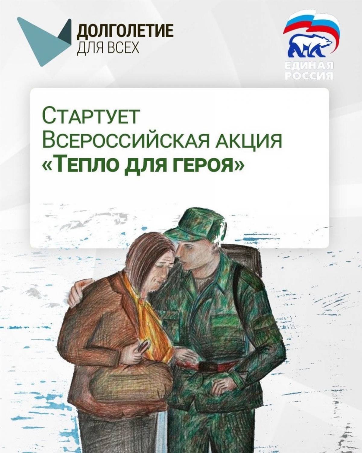 Всероссийская акция «Тепло для героя» реализуется в рамках направления «Долголетие для всех» партийного проекта «Старшее поколение».