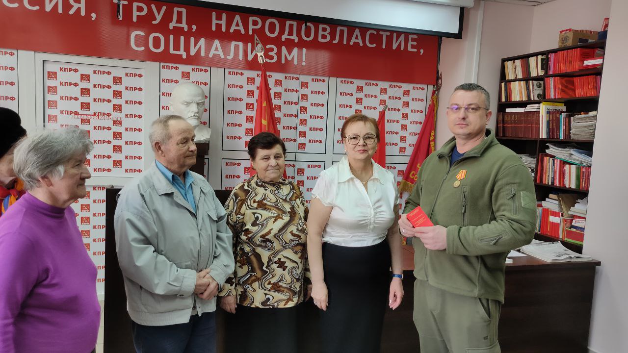 Сегодня первый секретарь Чебоксарского горкома КПРФ Зоя Семенова вручила памятную медаль «100 лет СССР» секретарю первичной партийной организации №16 Алексею Сержантову. Она поблагодарила его за активную жизненную позицию, за огромный вклад в организацию сбора и отправки гуманитарной помощи нашим бойцам на передовой.