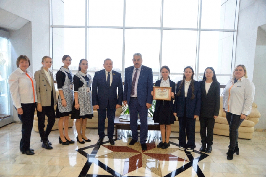 Вместе с вице-спикером республиканского парламента Виктором Горбуновым Леонид Ильич вручил юным журналистам сертификат на поездку в Москву и экскурсию в студию федерального телеканала «ТВ-3».