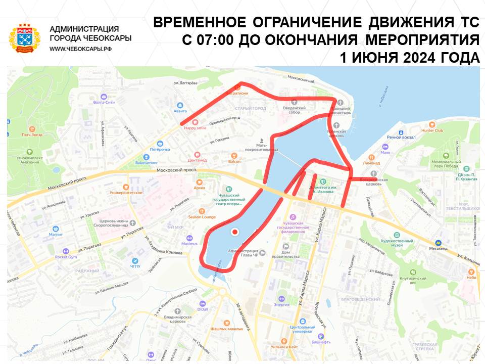 1 июня в связи с проведением массового забега «Зеленый марафон» в районе Чебоксарского залива будет ограничено движение и стоянка для всех видов транспортных средств.